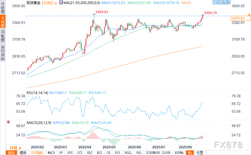 在好意思邦交往时段,现货黄金交投于3477好意思元隔邻,较亚洲时段波及的日内高点3489好意思元略有回落,且距离3500好意思元的历史高点仅一步之遥。情切的技能性抛售以及好意思国国债收益率企稳,对商场情谊组成压力;此外,由于好意思国商场因服务节休市,刻下交往活跃度仍处于低位。